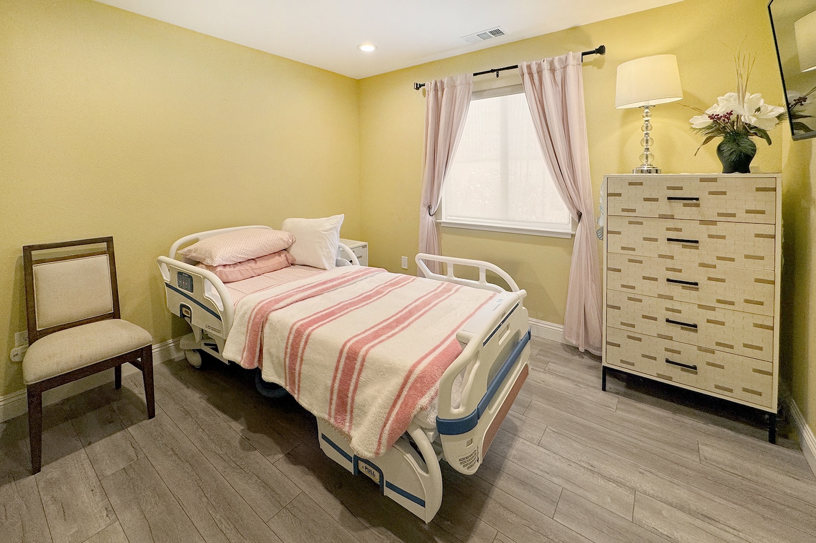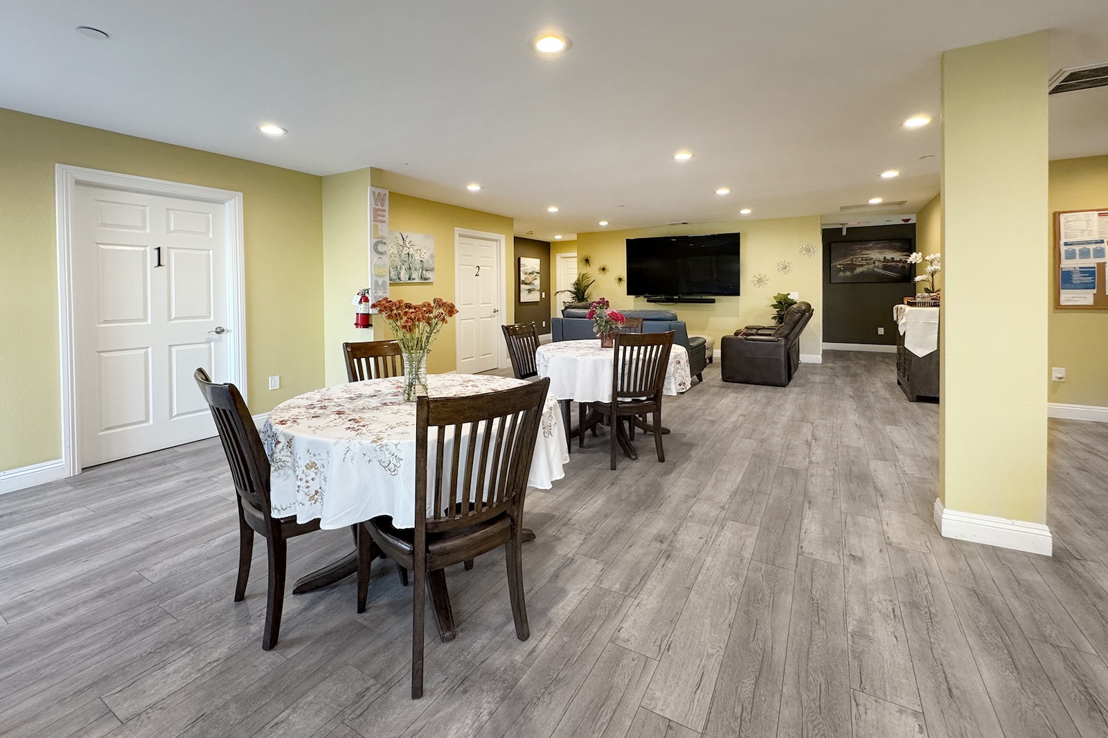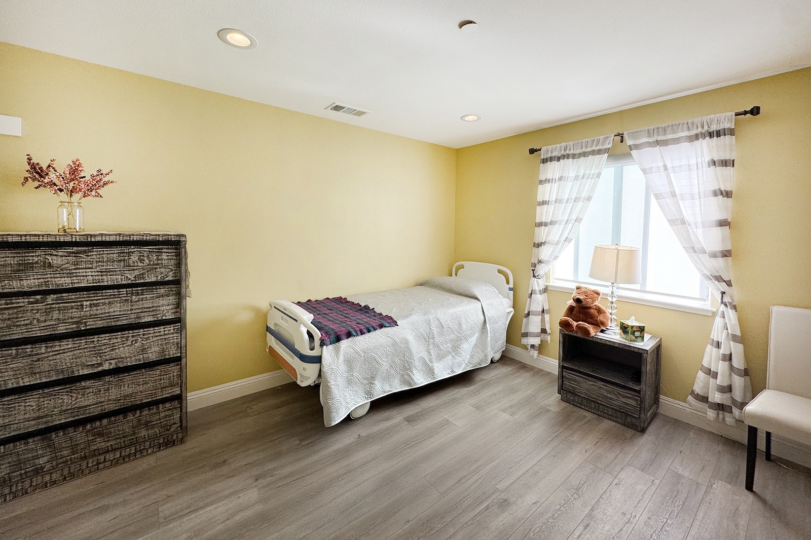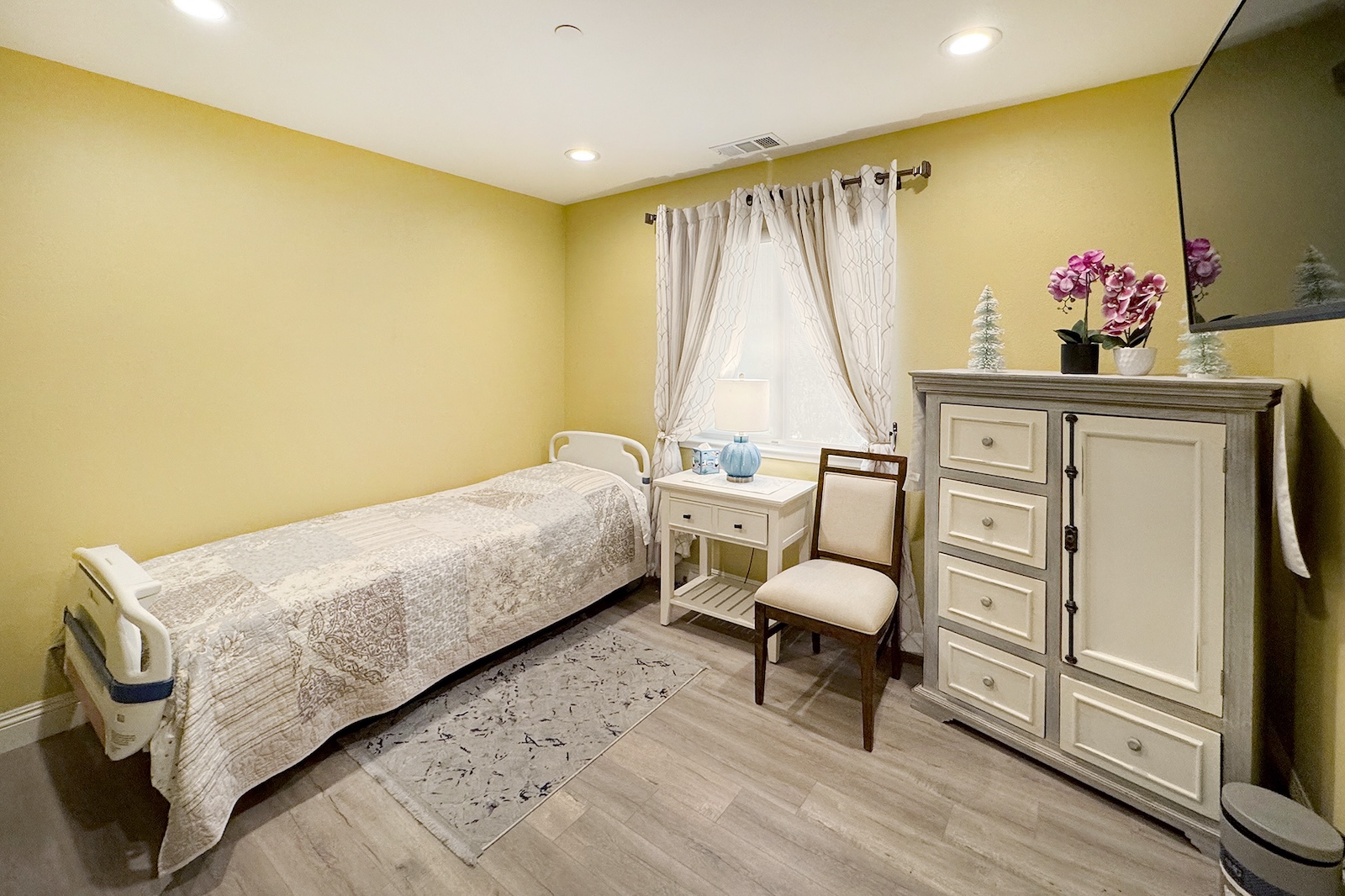Residents enjoy private, fully furnished rooms designed for comfort and dignity, with the flexibility to add personal touches and adaptive equipment. We serve three nutritious, home-cooked meals daily, along with snacks and beverages throughout the day. Meals can be modified according to physician recommendations to ensure both health and enjoyment. Our inviting shared spaces and cozy atmosphere make it easy to feel at home — a place where kindness, companionship, and quality of life come first.